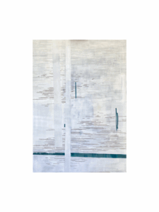 Syntetyczny zapis wspomnienia, chwili na brzegu jeziora, gdzieś w nieokreślonej przestrzeni i czasie. Próba podkreślenia nieokreśloności za pomocą minimalistycznych środków wyrazu. Tworzę dla odbiorcy miejsce kontemplacji, wyciszenia i ukojenia zmysłów.